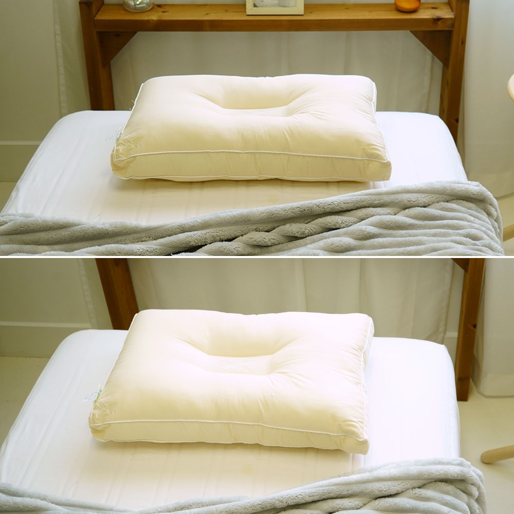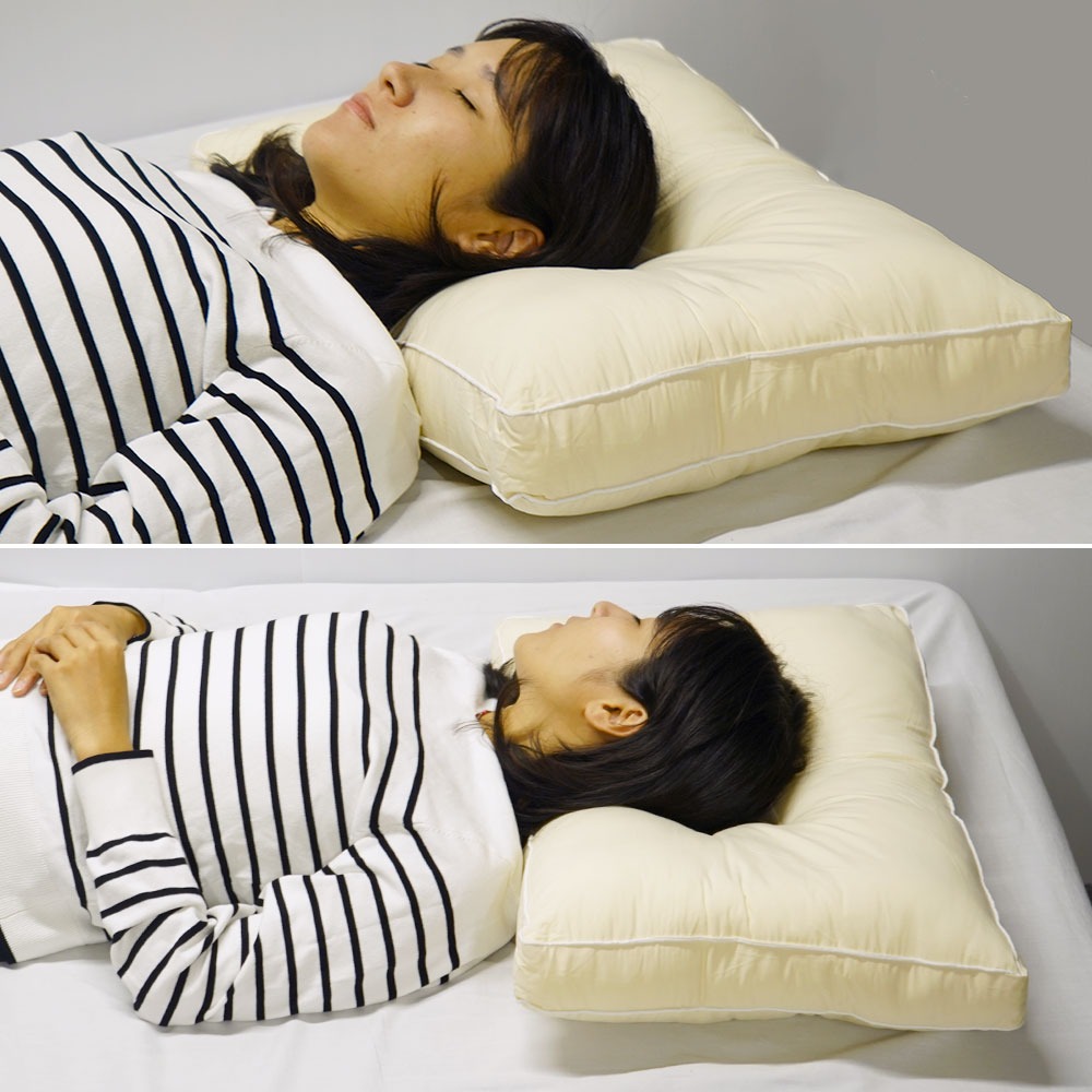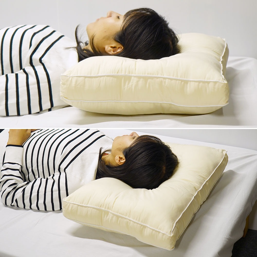 中央のくぼみと周りの部分の高低差によって、頚椎(けいつい)や頭部をしっかりと支えます。