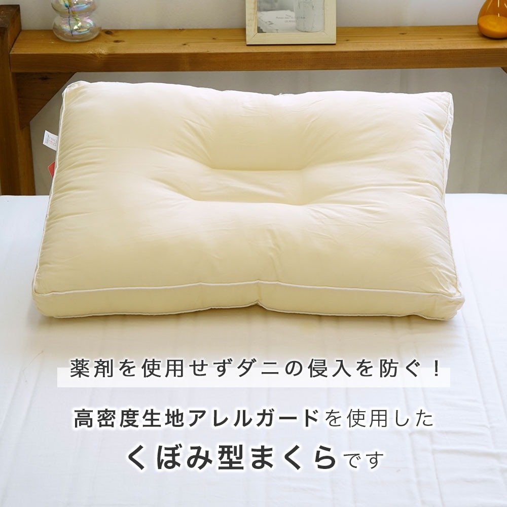 薬剤を使わずダニの侵入を防ぐ 防ダニ アレルガード くぼみ型まくら 約39×59cm(43×63cmまくらカバー対応)