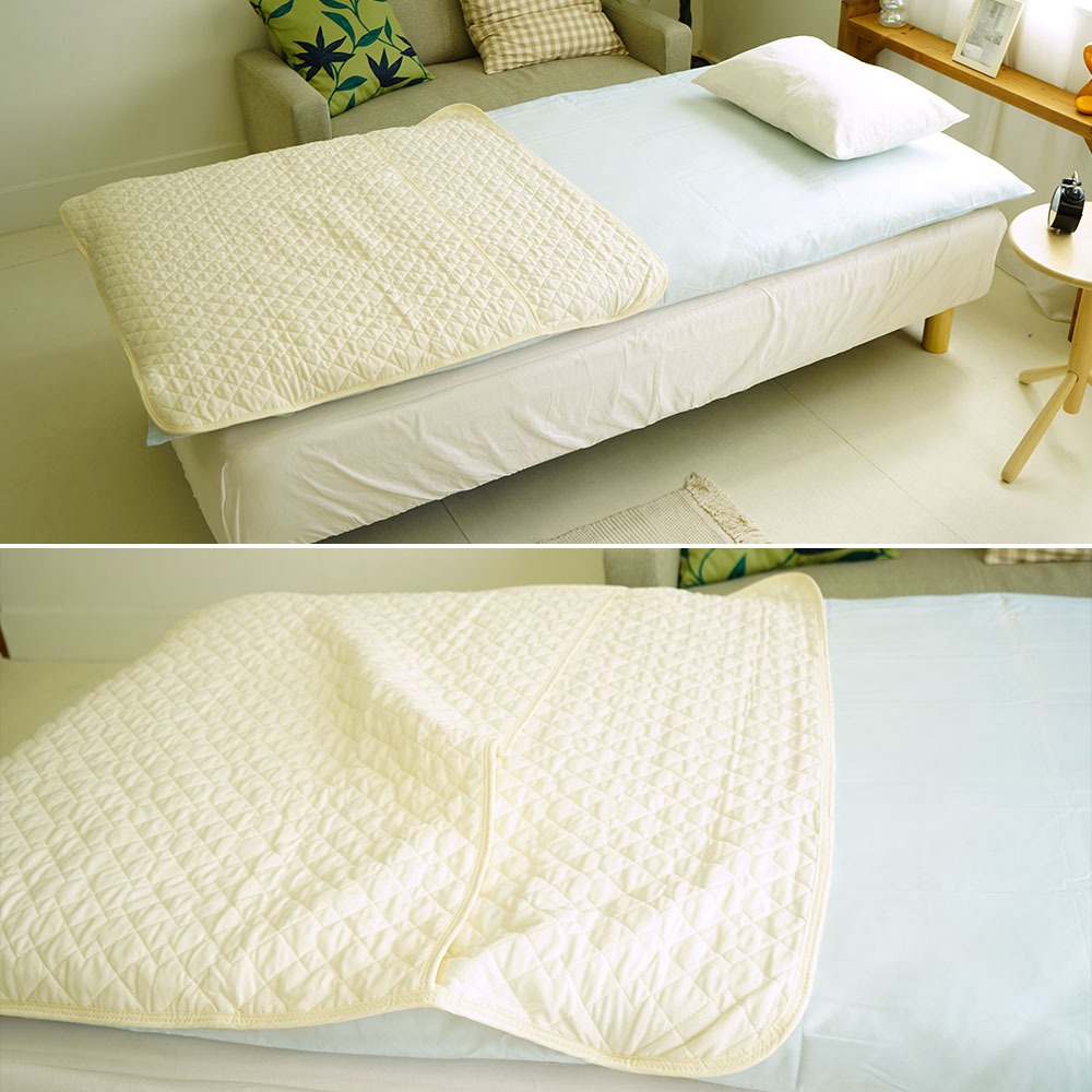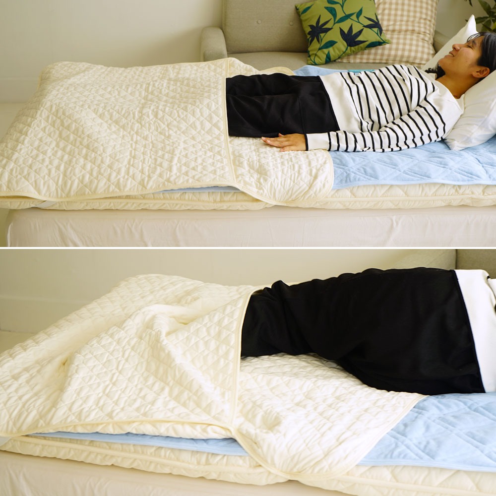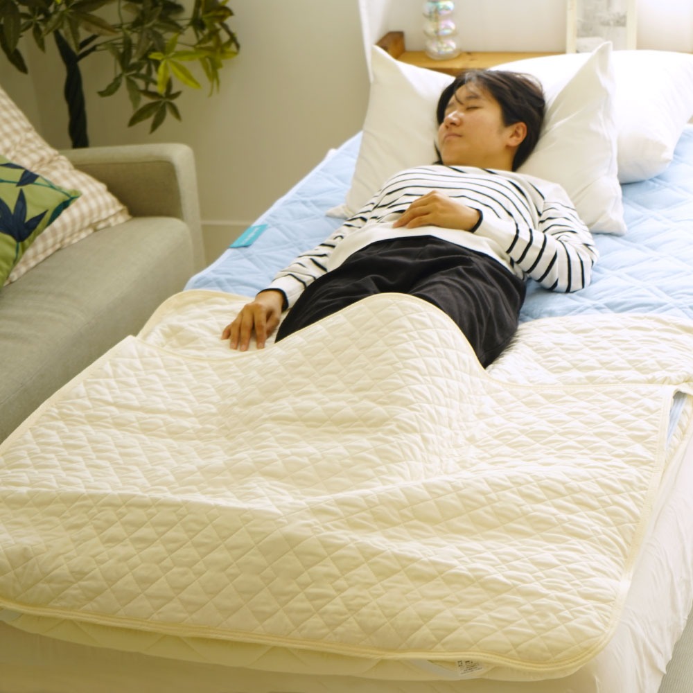 冷房の効いた部屋でも足元の冷えを防ぎ、心地よく眠るためにお肌に優しいピュアコットンガーゼを使用した「足ポケット式 敷パッド」が新登場!