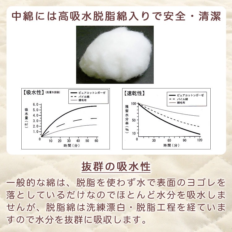 脱脂綿とガーゼで作られており、ホコリが出にくく丸洗いできる為、お肌のデリケートな赤ちゃん、アレルギーの方にも安心と評判の寝具です。