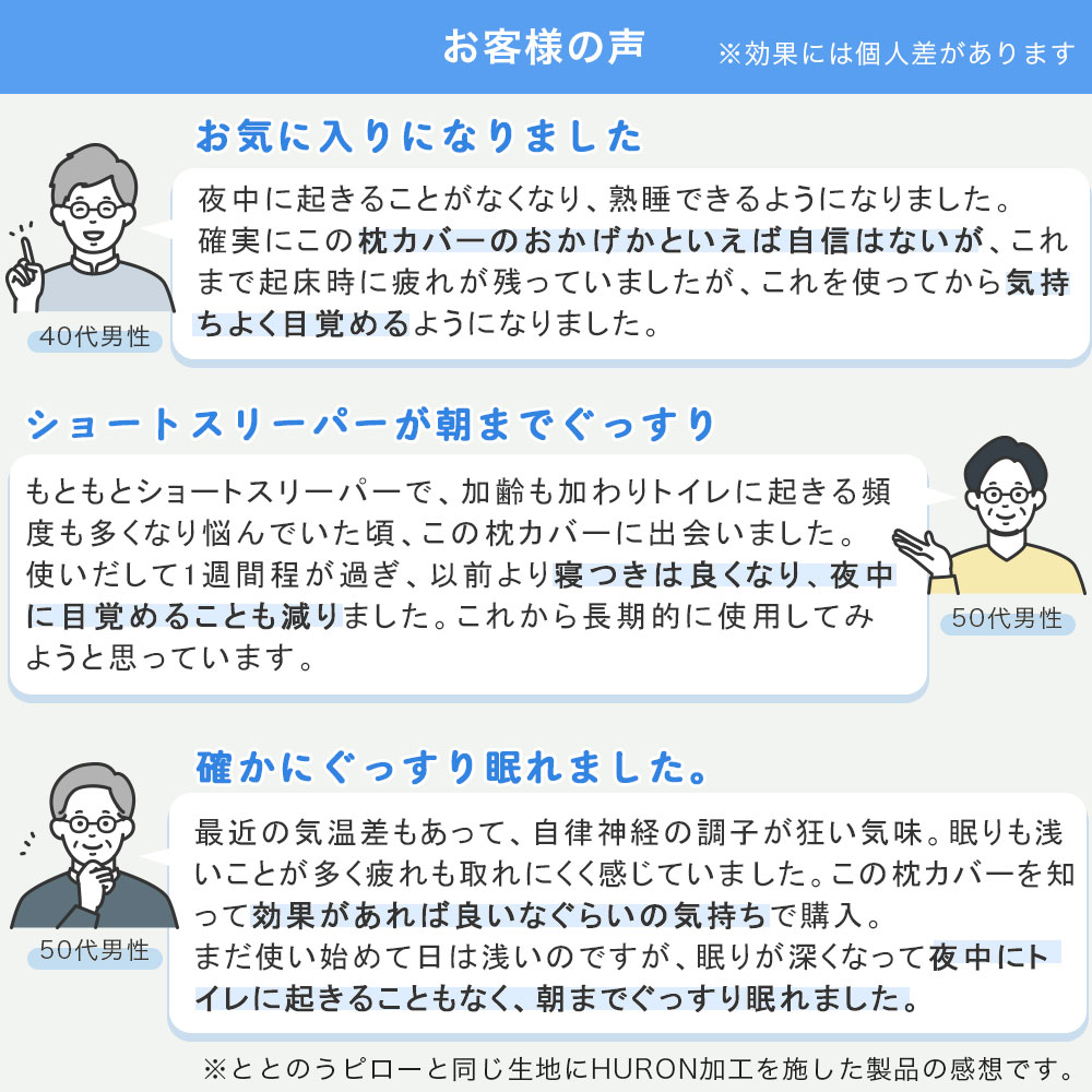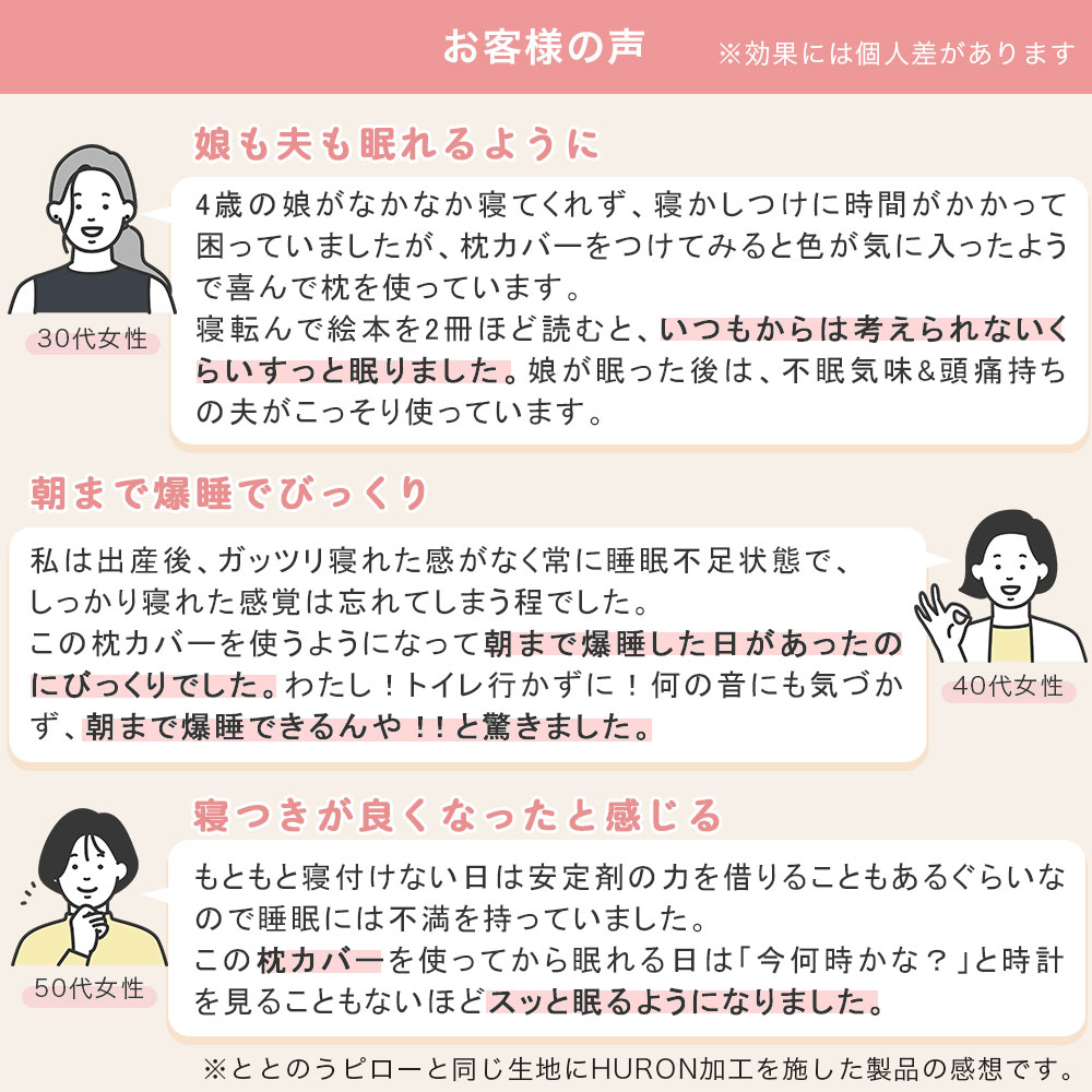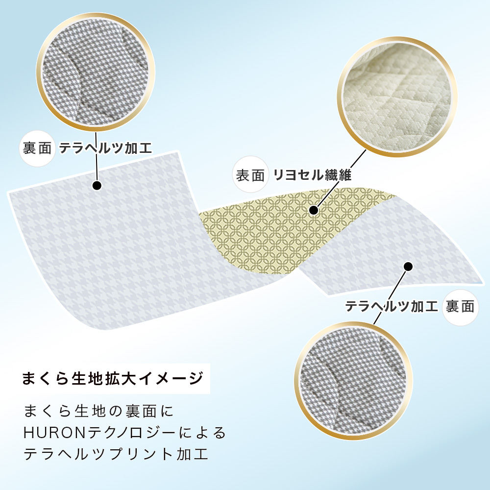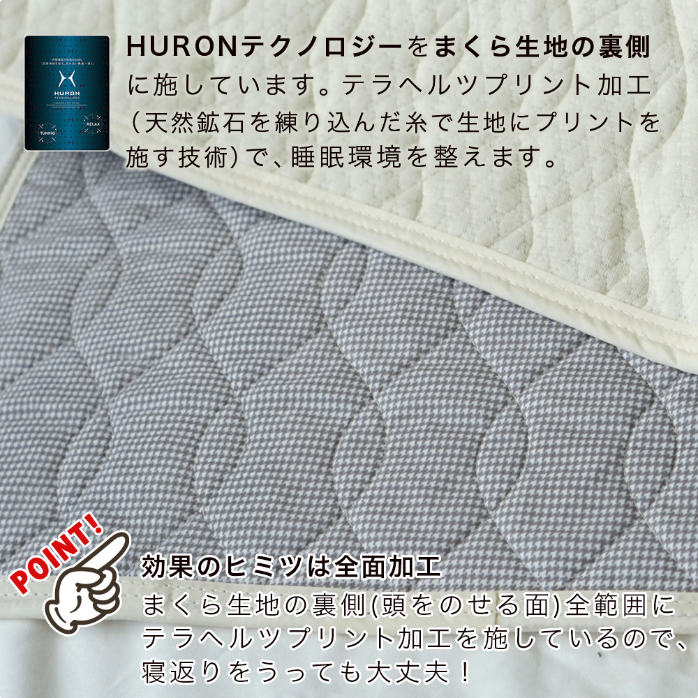 ・まくら生地の裏側にテラヘルツ鉱石加工を施すHURONテクノロジーを採用