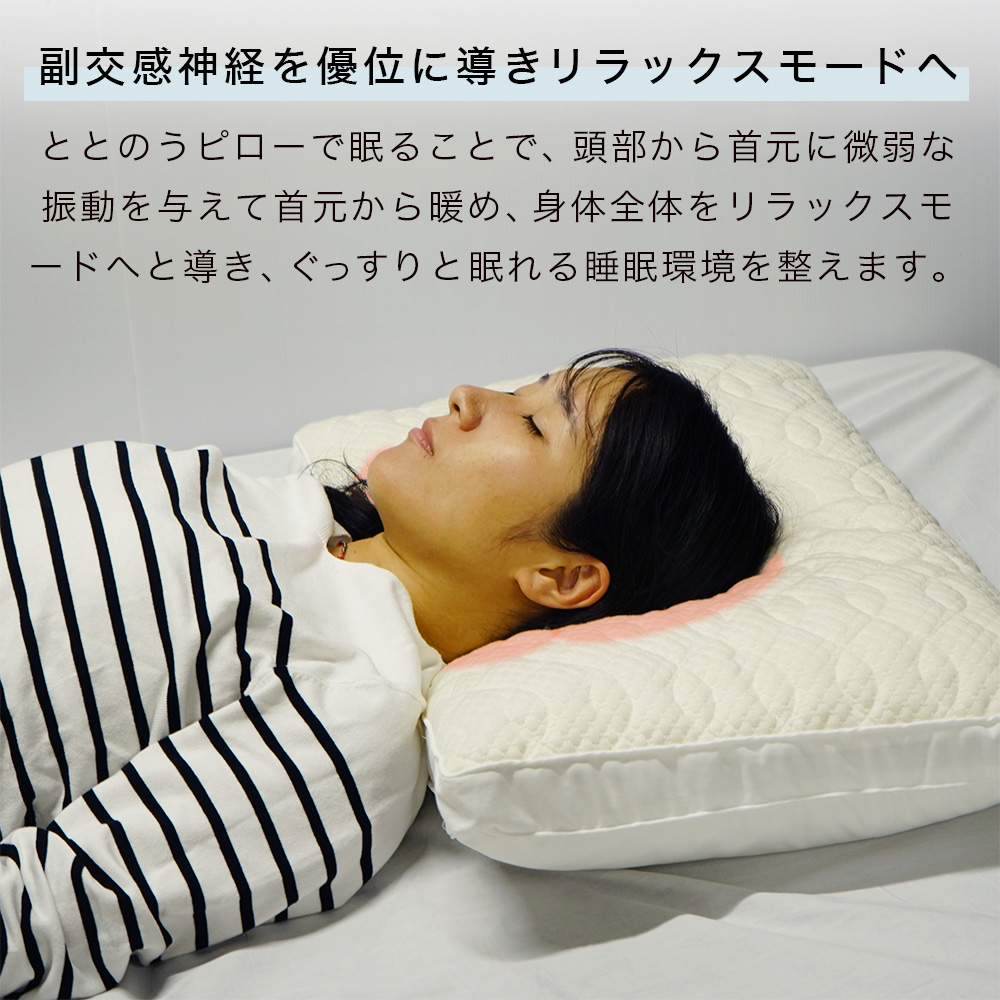 ととのうピローで眠ることで、頭部から首元に微弱な振動を与えて首元から暖め、