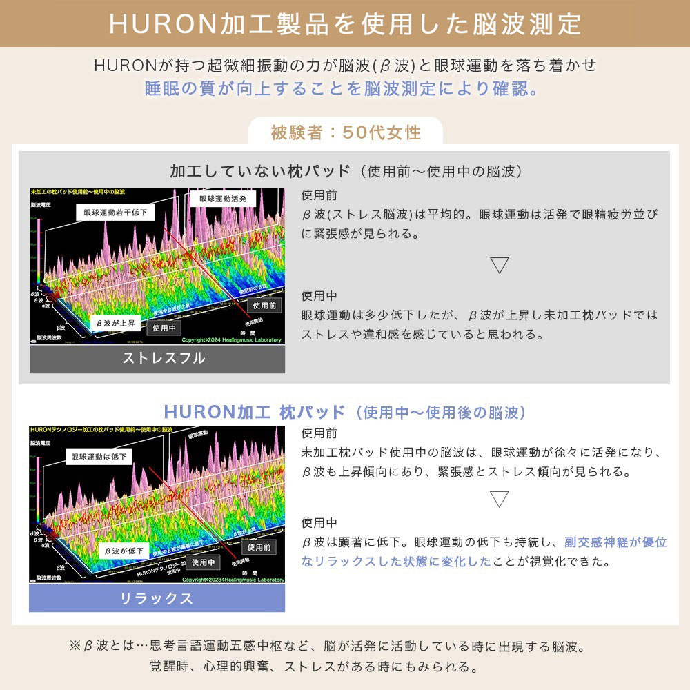 「HURONテクノロジー(超微細振動)+天然鉱石を練り込んだテラヘルツプリント加工」を施して、身体全体をリラックスモードへ導きます。