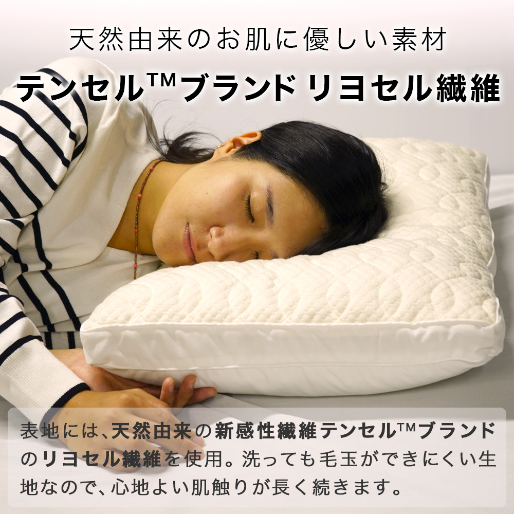 ・肌に触れるまくら生地表面は天然由来の優しい素材リヨセル繊維を使用