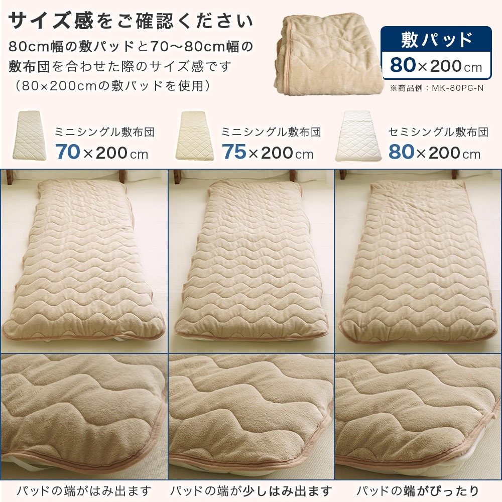 「80×200cm」の敷パッドは、「70~80×200cm」の小さめ敷布団と
