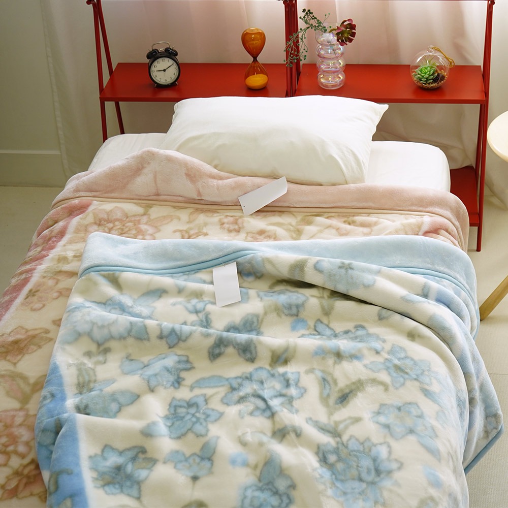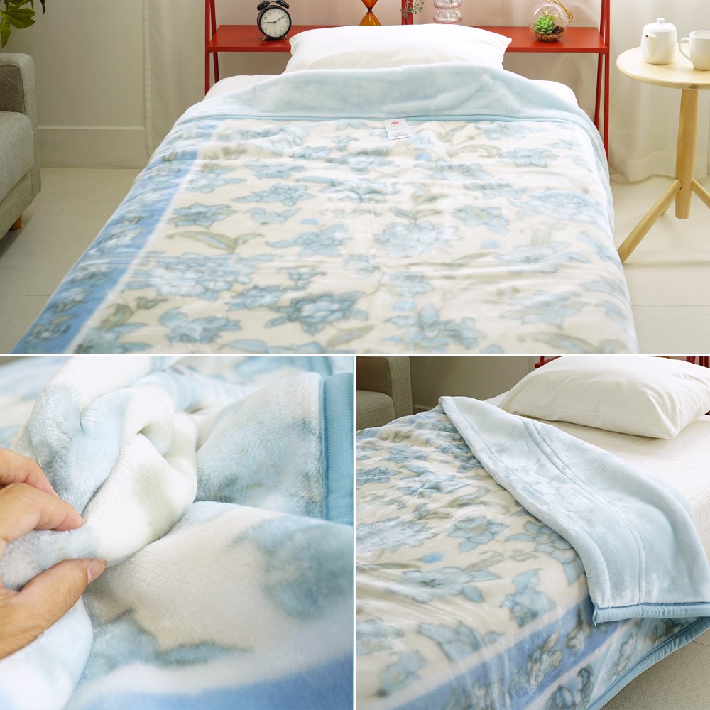 2枚合わせでしっかり暖い、安心のブランド西川製マイヤー毛布です。