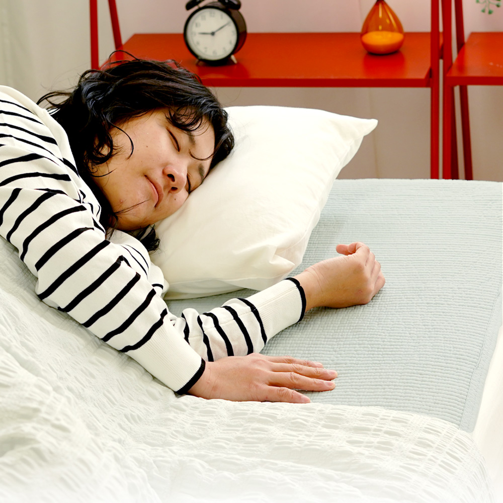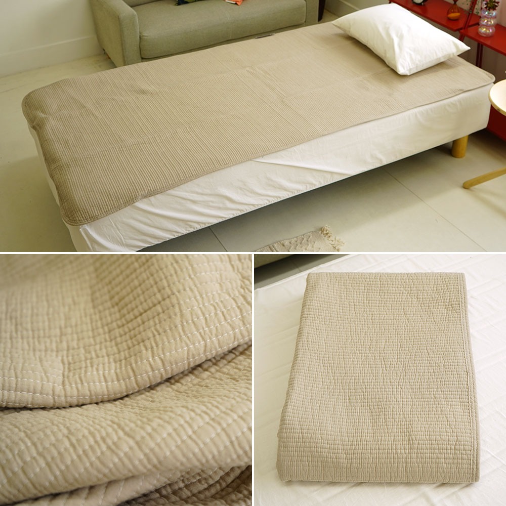 使い始めから肌になじむ、水洗い加工されたヌビの敷パッド。綿100%のさらっと心地よい肌触りでオールシーズンお使いいただけます。